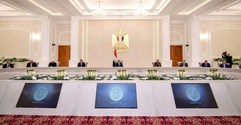 الرئيس السيسي يعقد اجتماعاً مع أعضاء الحكومة بمقر القيادة الاستراتيجية في العاصمة الإدارية الجديدة.