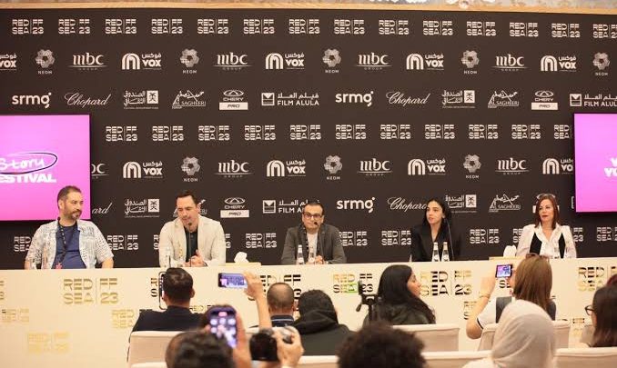 ردا علي سؤال الكاتبة الصحفية نورا انور لابطال فيلم ” انف ثلاث وعيون ”  بالمؤتمر الصحفي ضمن فاعليات مهرجان البحر الأحمر السينمائي