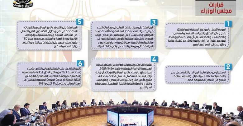 بالإنفو جراف… الحصاد الأسبوعي لمجلس الوزراء خلال الفترة من 29 مايو حتى 4 يونيو 2021