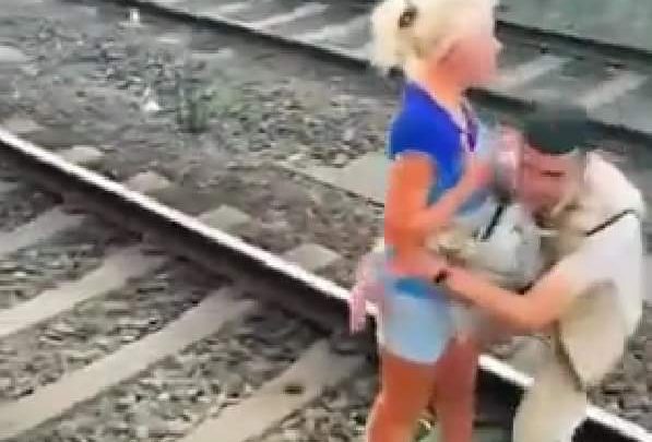 وظهر الشاب البالغ من العمر 25 عاما، في فيديو وهو يركض نحو الفتاة، التي كانت واقفة في مسار القطار بانتظار أن يدهسها، وبسرعة حملها بذراعيه وقفز بها إلى الرصيف قبل وصول القطار، فيما أجهشت هي بالبكاء، حينها راح يخفّف عنها ويعاتبها على الضرر الذي كانت ستلحقه بنفسها لو بقيت في مسار القطار.