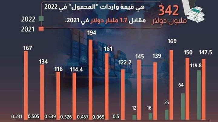 تراجع قيمة واردات الهاتف في 2022 لتسجل 342 مليون دولار مقابل 1.7 مليار دولار في 2021