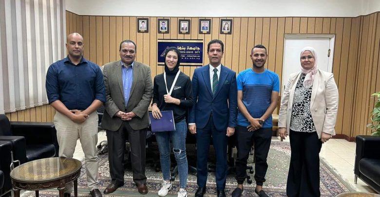 قدم الدكتور ناصر الجيزاوي التهنئة للطالبة الفائزة في البطولة ، مؤكدًا أن جامعة بنها حريصة على تشجيع الطلاب على ممارسة الأنشطة الرياضية