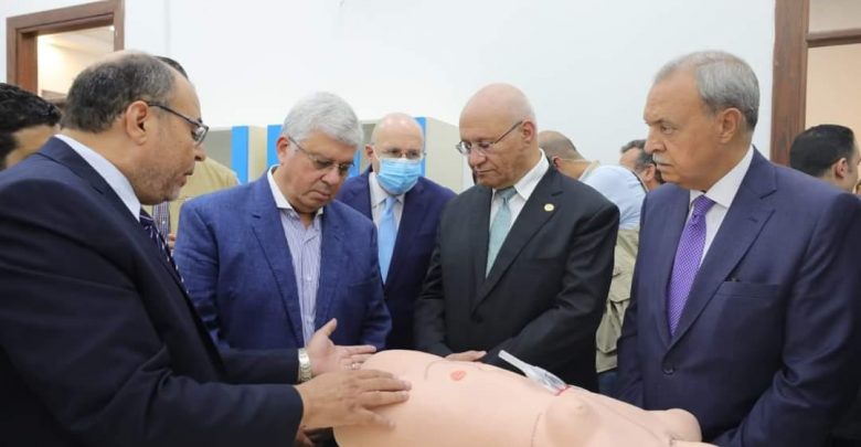 وقام الوزير خلال جولته التفقدية بافتتاح مركز المهارات والمحاكاة الطبية بجامعة بنها، والذي يعد أحد مخرجات الشراكة الإستراتيجية بين جامعة بنها والبنك الأهلي المصري، وأشاد الوزير بالمركز وما يتوافر به من تكنولوجيا طبية تساهم في تطوير وتأهيل الكوادر الطبية والانعكاس الإيجابي لذلك على تقديم خدمة صحية مميزة للمواطنين، وبلغت تكلفة إنشاء المركز ١٥ مليون جنيه، ويكتسب المتدربون بالمركز عددًا من المهارات الطبية قبل الممارسة الإكلينيكية على المرضى، بالإضافة إلى اكتساب مهارات التعامل الطبي في الرعاية الحرجة مثل كيفية التعامل مع مجرى الهواء، والإنعاش القلبي الرئوي، والصدمات الكهربائية للقلب، الأمر الذى يدعم إمكانية تفادي حدوث أي أخطاء طبية قد تنتج عن تطبيق بعض المهارات التعليمية على الإنسان.
