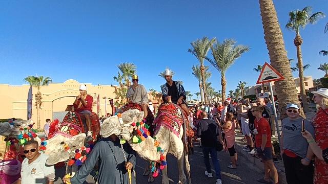 احتفل آلاف السائحين بعيد الكريسماس في شوارع الغردقة بالزي الفرعوني وزفة بلدي بالجمل والحصان وعربة بابا نويل وسط فرحة السياح الذين رقصوا على أنغام المزمار البلدي في جو من البهجة والفرحة والسعادة بالاحتفالات.