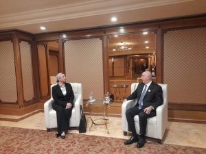 التقت الدكتورة ياسمين فؤاد وزيرة البيئة بالسيد نزار ئاميدى وزير البيئة العراقى ، لبحث سبل التعاون المشترك فى عدد من المجالات البيئية وخاصة ملف التغيرات المناخية وذلك على هامش مشاركة وزيرة البيئة فى المؤتمر التاسع لوزراء البيئة في العالم الإسلامي”نحو تحقيق التحول الأخضر في العالم الإسلامي” ، الذى تنظمه منظمة العالم الإسلامي للتربية والعلوم والثقافة إسيسكو بمدينة جدة بالمملكة العربية السعودية ، بحضور المهندس عبد الرحمن بن عبد المحسن الفضلي وزير البيئة والمياه والزراعة بالمملكة العربية السعودية والدكتور سالم بن محمد المالك مدير عام منظمة العالم الإسلامي للتربية والعلوم والثقافة، ولفيف من وزراء البيئة لعدد من الدول العربية والإسلامية.