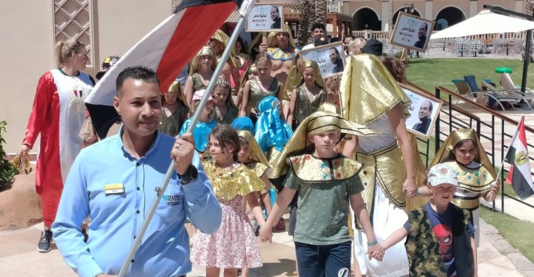 فنادق الغردقة تنظم مسيرة احتفالية في ذكرى 30 يونيو على الشواطئ بمشاركة السائحين الأجانب | صور