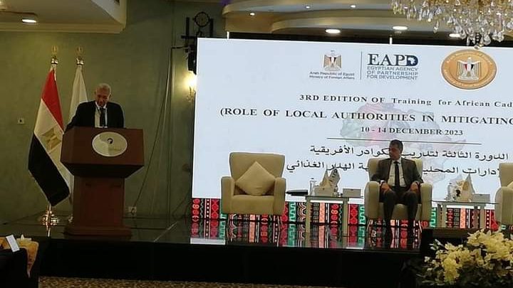 جاء ذلك خلال الكلمة التي ألقاها السفير/ محمد حجازي مستشار وزير التنمية المحلية للتعاون الدولي، نيابة عن اللواء هشام آمنة وزير التنمية المحلية، خلال افتتاح برنامج الدورة التدريبية الثالثة للكوادر المحلية الأفريقية 2023 فى مجال دور الإدارات المحلية في مجابهة الهدر الغذائي، اليوم الأحد والتي تنظمها الوزارة بالتعاون مع الوكالة المصرية للشراكة من أجل التنمية بوزارة الخارجية المصرية، وتستمر لمدة 5 أيام حتى 14 ديسمبر الجاري .