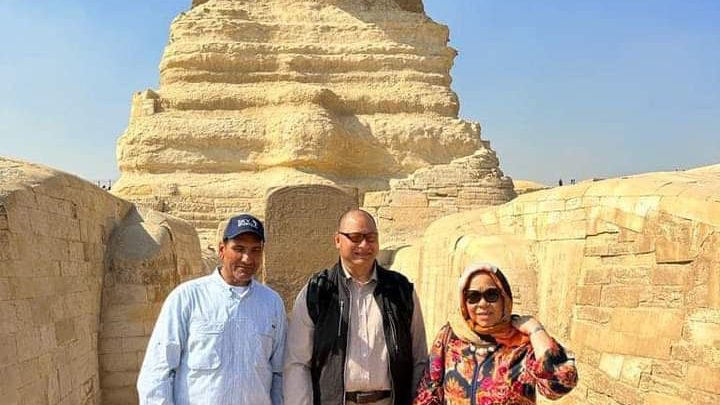 وكان في استقبالهم الأستاذ أشرف محي الدين مدير عام منطقة آثار الهرم، والذي اصطحبهم في جولة تعريفية بالمنطقة الأثرية.