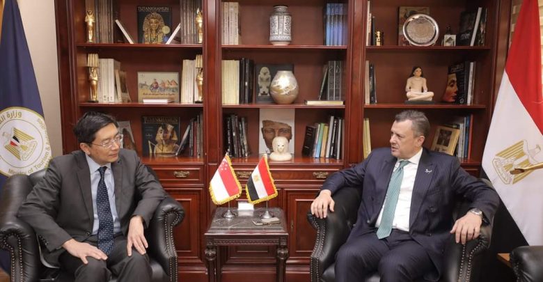 وزير السياحة والآثار وسفير سنغافورة بالقاهرة يبحثان سبل تعزيز التعاون السياحي والأثري