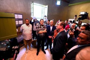 وخلال إعادة الافتتاح، قام السيد الوزير والمحافظ والحضور بجولة داخل الاستراحة، استمعوا خلالها لشرح من الدكتور نيكولاس وارنر مدير مشاريع التراث الثقافي بمركز البحوث الأمريكي بمصر ومدير مشروع ترميم الاستراحة.