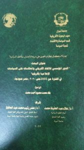 أهدى الصحفي طه محمد الشيخ بدار أخبار اليوم، نسخة من رسالته العلمية إلى جامعة سوهاج ، التي تحمل عنوان : الدور المؤسسي للاتحاد الأفريقي و انعكاساته على السياسات الإعلامية بأفريقيا من ٢٠٠٥ حتى ٢٠٢٠ " مصر نموذجاً".
