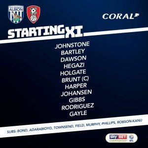 أعلن جيمى شان، المدير الفنى لنادى وست بروميتش ألبيون المحترف ضمن صفوفه أحمد حجازى مدافع منتخب مصر، التشكيلة الأساسية التى سيخوض بها مباراة روثيرهام يونايتد التى تنطلق بعد قليل على ملعب "ذا هاوثورنس"، ضمن منافسات الجولة الـ45 من عمر مسابقة دوري الدرجة الأولى الإنجليزى "تشامبيونشيب".