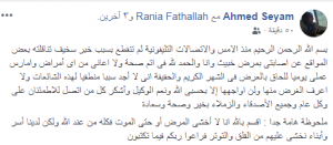 وكتب صيام عبر حسابه الشخصى على "فيس بوك" بسم الله الرحمن الرحيم منذ الأمس والاتصالات التليفونية لم تنقطع بسبب خبر سخيف تناقلته بعض المواقع عن إصابتى بمرض خبيث وأنا والحمد لله فى أتم صحة ولا أعانى من أى أمراض وأمارس عملى يوميا للحاق بالعرض فى الشهر الكريم والحقيقة أنى لا أجد سببا منطقيا لهذه الشائعات ولا أعرف الغرض منها ولن اواجهها إلا بحسبى الله ونعم الوكيل وأشكر كل من اتصل للاطمئنان على وكل عام وجميع الأصدقاء والزملاء بخير وصحة وسعادة.