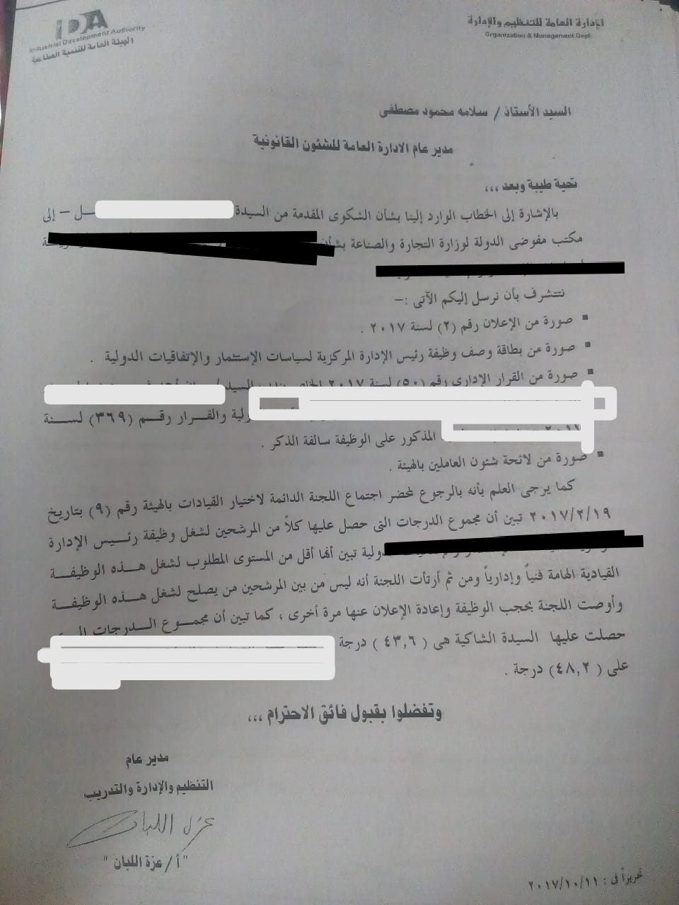 تعتبر هيئة التنمية الصناعية هى احد اهم الهيئات التابعة لوزارة الصناعة والتجارة وتختص بدراسة التشريعات المتعلقة بالصناعة ودراسة مخططات التنمية الصناعية وتحديد الأراضي والأنشطة والمنتجات الصناعية واصدار شهادات السجل الصناعي للمنشأت الصناعية .وما يحدث فى هذه الهيئة العريقة حاليا لا يصدقه عقل فقد تقدم احد المهندسين الذى كان يشغل منصب قيادي بالادارة العامة لمناطق المشروعات الهندسية بالهيئة لوظيفة رئيس إحدي الادارت المركزية في الاعلان رقم 2 لسنة 2017 وظائف قيادية وحصل علي 48.2 % وتبين للجنة الدائمة لاختيار القيادات بالهيئة في محضرها رقم 9 بتاريخ 19 فبراير 2017 ان مجموع الدرجات التى حصل عليها هذا المتقدم لشغل وظيفة رئيس الادارة المركزية تبين انها اقل من المستوى المطلوب لشغل هذه الوظيفة القيادية الهامة فنيا واداريا ورات اللجنة انه ليس من بين المرشحين من يصلح لشغل هذه الوظيفة واوصت اللجنة بحجب الوظيفة واعادة الاعلان عنها مرة اخرى .مستند.. خطاب التنظيم والادارة يثبت عدم كفاءة احد متقدم لشغل الوظيفةوبالرغم من اقرار لجنة القيادات بعدم تأهله لهذه الوظيفة الهامة الا انه صدر القرار الادارى رقم 50 بتاريخ 26 فبراير 2017 بندبه رئيسا لتلك الادارة وهى نفس الوظيفة التى اقرت لجنة القيادات بعدم تأهله لها فنيا واداريا ثم صدر القرار الادارى رقم 369 بتاريخ 22 اغسطس 2017 بتجديد ندبه علي نفس الوظيفة التى اقرت لجنة القيادات بعدم تأهله لها ثم صدر القرار الادارى رقم 392 بتاريخ 11 سبتمبر 2017 بندبه رئيسا للادارة المركزية وتم تجديد ندبه علي هذه الوظيفة لمدة ثلاثة شهور بالقرار الادارى رقم 101 لسنة 2018 ثم تم تجديد الندب مرة اخرى بالقرار الادارى رقم 512 بتاريخ 22 نوفمبر 2018 ولم يحدد القرار الادارى مدة الندب بالمخالفة لقانون الخدمة المدنية.. وهو في صدام مستمر مع كبار مهندسي الادارات الفنية ويقف امام اصدار قرارات تكليف لهم على سبيل المثال فقد توجه مهندسى الادارة العامة للمشروعات الغذائية بالكامل لمقابلة رئيس الهيئة الاسبوع الماضى يشكون من تعنت رئيس الادارة المركزية معهم وفرض سيطرته عليهم بالرغم من وجود كبير اخصائيين بدرجة مدير عام بالادارة الا انه سحب منه كافة صلاحيته التى كفلتها له المادة 73 من لائحة الهيئة والمادة 34 من قانون الخدمة المدنية والتى تنص على انه فى حالة خلو منصب شاغل الوظيفة القيادية يحل محله اقدم من يليه مباشرة فاستجاب لهم رئيس الهيئة على الفور وقام بتكليف المهندس / شريف اللبان قائم بعمل مدير عام للادارة الغذائية الا ان رئيس الادارة المركزية مازال متعنتا ويرفض ترشيح قائم بعمل مدير عام لادارة المشروعات الهندسية وقائم بعمل مدير عام لادارة المشروعات المعدنية وقائم بعمل مدير عام لادارة المشروعات التعدينية وقائم بعمل مدير عام لادارة الجلود . والاخطر من ذلك انه يصدر قرارات تكليف بتشكيل لجان لاجراء الزيارات الميدانية لتاهيل المصانع للسجل الصناعى من مهندس واحد فقط وهذا الامر مخالف للقرار الادارى رقم 144 الصادر بتاريخ 15 ابرايل 2014 الذى نص علي تشكيل لجنة اجراء الزيارات الميدانية من عدد 2 من اخصائيين الادارة الفنية + عدد واحد من موظفي الادارة المركزية للسجل الصناعى مما يترتب على ذلك عواقب وخيمة .كما يقوم رئيس تلك الإدارة بتحريض المستثمرين بتقديم شكاوى ضد المهندسين لترهيبهم وتهديدهم بتحويلهم للتحقيق بالادارة العامة للشئون القانونية لمجرد الاختلاف فى الرأى كما تسبب فى الاطاحة بالعديد من المهندسين الاكفاء من الادارات الفنية من سواء من الحاصلين على درجة البكالوريوس فى هندسة الانتاج او الحاصلين على درجة الماجستير فى العلوم بالاضافة الى ان رئيس الادارة المركزية للشئون الفنية يتعنت مع مرؤوسيه من المديرين والموظفين فى قبول ورفض واعتماد الاجازات .وتتلخص خدمات تلك الادارة فى اعداد وتقييم دراسات الجدوي الفنية لطرح الاراضى والمجمعات الصناعية وابداء الرأي الفني للسجل الصناعي وابداء الرأي الفني في الم