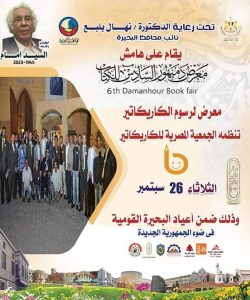 كتب/ سمير البرعى تحت رعاية الدكتورة نهال بلبع نائب محافظ البحيرة و على هامش افتتاح معرض دمنهور السادس للكتاب غدا الثلاثاء الموافق 26 سبتمبر سيقام معرض " فن الكاريكاتير " بالتعاون مع الجمعية المصرية للكاريكاتير والذى يضم أكثر من 40 لوحة