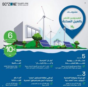 وكشف البيان الصادر بالإنفوجراف عن الشركات أطراف مذكرات التفاهم وكذلك الاستثمارات والطاقة الإنتاجية لكل مشروع، وموقع المشروعات حيث تستهدف المنطقة الاقتصادية لقناة السويس منطقة السخنة بأن تكون مركزاً إقليمياً رائداً في صناعات الهيدروجين الأخضر، تزامناً التحول العالمي لاستخدامات الطاقة النظيفة.