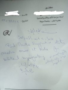 قرر أستاذ بقسم الأنف والأذن والحنجرة بطب أسيوط، تحويل الطفلة ض. ط. م إلى طواريء الأذن بمستشفى كلية طب أسيوط ، لإجراء عملية أذن طارئة، تحت التخدير الكلى لإزالة الصديد من الأذن الوسطى بالجهتين، حتى لا يحدث تسوس بهما، وذلك يوم الثلاثاء الموافق ١٢ ديسمبر ٢٠٢٣ ، وحضرت