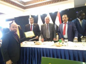 جاء ذلك خلال اجتماع الاتحاد لجمعيته العمومية العادية ومجلس إدارته مساء أمس برئاسة اللواء محمد رشاد وكيل المخابرات المصرية الأسبق ورئيس مجلس إدارة الاتحاد وحسام أبو العلا الأمين العام ومؤسس للاتحاد ونواب رئيس الاتحاد فاطمة السعيد وعبد الرحمن أمين وسعيد العمدة ومن المملكة العربية السعودية نائب الرئيس الشيخ فايز بن راشد وبحضور العديد من الأعضاء من مصر و الدول العربية و أفريقيا.