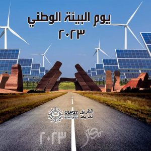 تحتفل وزارة البيئة بيوم البيئة الوطني لعام ٢٠٢٣ على منصات التواصل الاجتماعي للوزارة تحت شعار (الطريق لما بعد Cop27)، من خلال عرض مجموعة من الرسائل والتنويهات للتوعية بقضية تغير المناخ وجهود مواجهتها على المستويين العالمي والوطني، ورفع الوعي بأهمية الحفاظ على البيئة وامتداداً لمؤتمر المناخ Cop27.