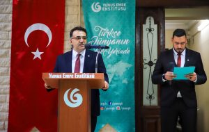 "نجتمع اليوم في الذكرى السابعة لليلة الخامس عشر من تموز لإحياء ذكرى شهدائنا ومشاركة مشاعر الوحدة والترابط التي تمثل أساس كل أمة، مع اصدقائنا المصريين، حيث يشرفنا اليوم بالحضور عدد من الأساتذة الجامعيين المتخصصين في تدريس اللغة التركية وطلاب المعهد الأعزاء، وكلاهما على دراية واسعة بثقافتنا وقيمنا المشتركة. دائما ما نتشارك معكم افراحنا واطراحنا، فأنتم خير من يعزز رباط الحب والصداقة بين بلدينا وشعبينا.