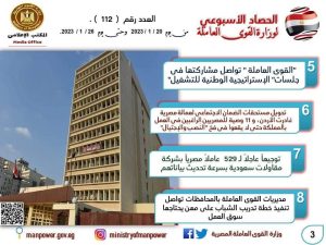 كتب/بسنت عبد الحميد تنشر وزارة القوى العاملة اليوم الجمعة وفي هذا البيان، وبالإنفوجراف، حصاد نشاطها خلال الـ7 أيام الماضية ،والذي يرصد الأنشطة والتوجهات التي تنفذها الوزارة لخدمة الوطن والمواطن ،ويُمكن التأكيد من خلال ذلك الحصاد على حرص ال