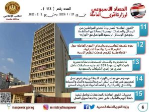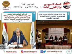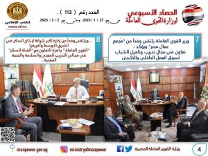 كتب/بسنت عبد الحميد كشفت وزارة القوى العاملة في تقرير لها اليوم الجمعة وبالإنفوجراف،عن نشاطها خلال ال7 ايام الماضية..وجاء في التقرير أن "الوزارة" شهدت العديد من اللقاءات والأنشطة مع شركاء اجتماعيين في الداخل والخارج ،ولعل أبرزها لقاء وزير التشغيل والتكوين
