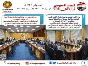 كشفت وزارة القوى العاملة في تقرير لها اليوم الجمعة وبالإنفوجراف،عن نشاطها خلال ال7 ايام الماضية..وجاء في التقرير أن "الوزارة" شهدت العديد من اللقاءات والأنشطة مع شركاء اجتماعيين في الداخل والخارج ،ولعل أبرزها لقاء وزير التشغيل والتكوين المهني التونسي ،وايضا وزير السياحة والآثار المصري ،كما شملت أنشطة الوزارة استكمال ملفات خدمية منها توفير فرص عمل في الداخل والخارج ،وايضا رعاية وحماية جديدة لعمالة غير منتظمة ،وعودة مستحقات عمالة مصرية في الاردن ،ناهيك عن ملف ذوي الهمم الذي ذهب إلى منعطف جديد ومتميز في الحصر والتدريب والتشغيل وإدماج تلك الفئة في سوق العمل ..إلى التفاصيل ..