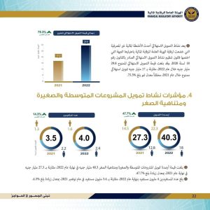 ٥٦٠ مليار جنيه اجمالي التمويل الممنوح من الجهات الخاضعة لرقابة الهيئة بنهاية ٢٠٢٢.