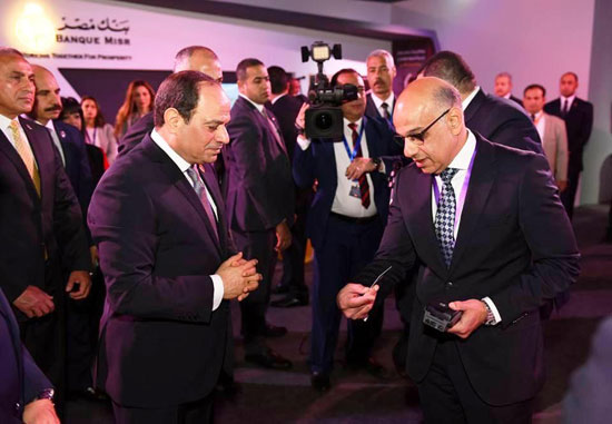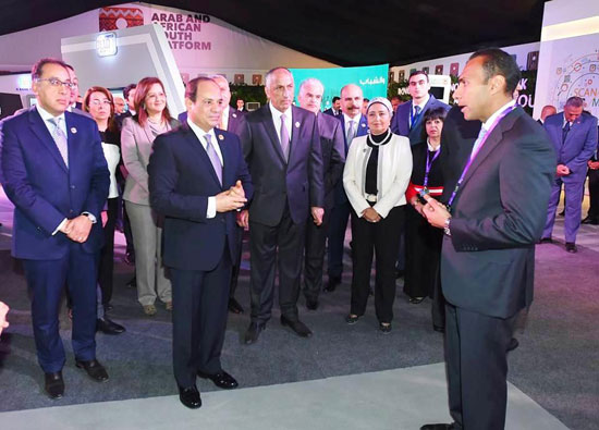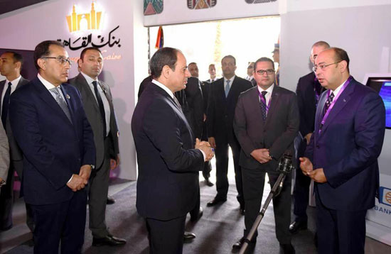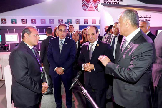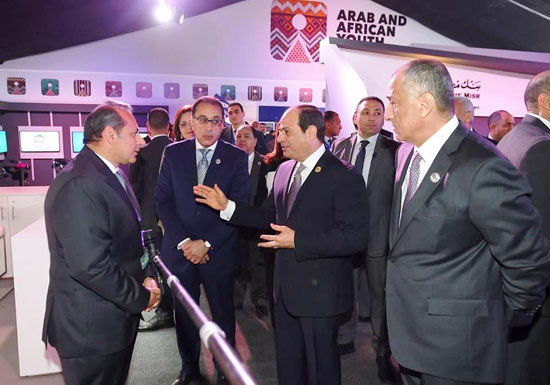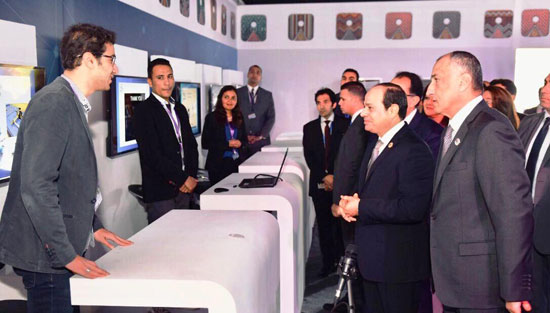 السيسى يتفقد الجناح الاقتصادى على هامش ملتقى الشباب العربى والأفريقى بأسوان