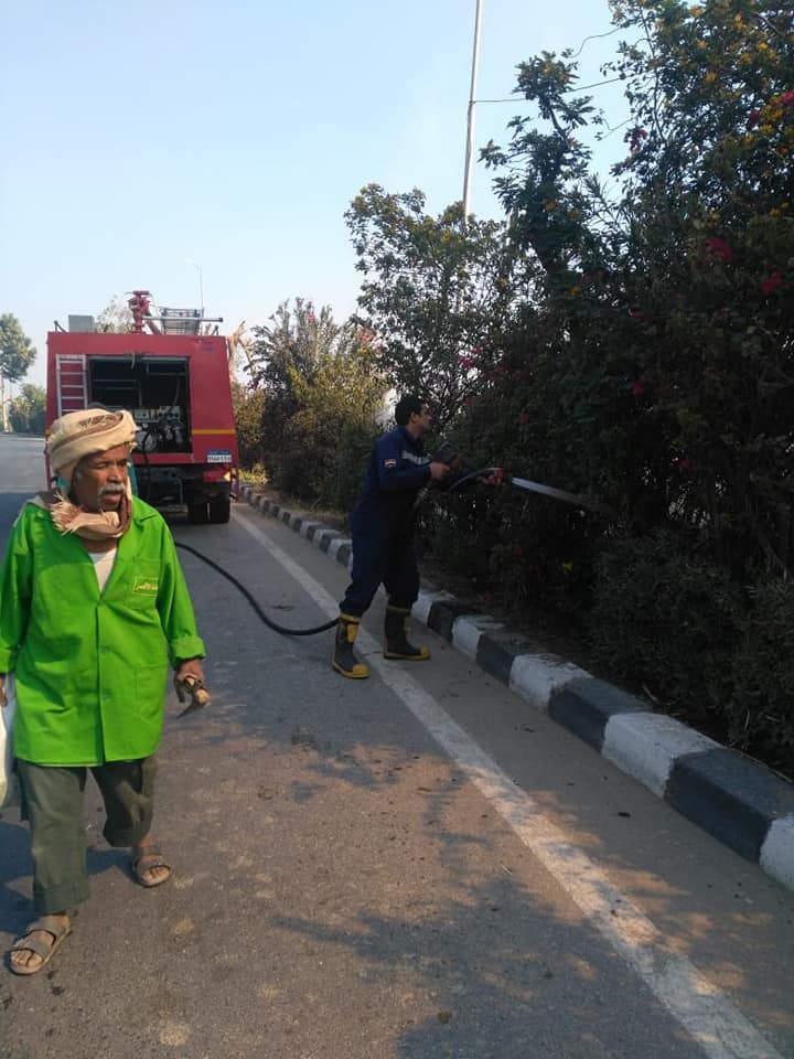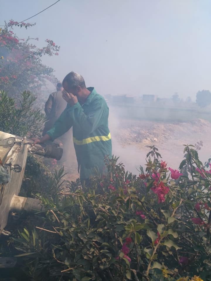 على الفور، انتقلت قوات الحماية المدنية، تم التعامل للسيطرة على الحريق، حتى لا تمتد وسط الأراضى الزراعية المجاورة، وذلك بمعرفة سيارة إطفاء، وسيارة رى الأشجار تابعة لإدارة الحدائق والبساتين ومعاونة رجال حى المطار، ولم تحدث أى تلفيات أو إصابات، وجارى تحرير محضر بالواقعة والعرض على النيابة العامة.