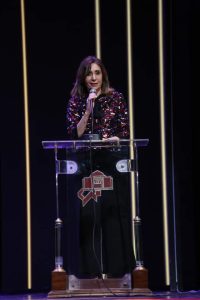 مشيرة إلى أن تلك الدورة تحمل رؤية جديدة -وضعتها اللجنة العليا الخاصة بالمهرجان، برئاسة الفنان محمد رياض-"، ووجهت وزيرة الثقافة التهنئة للمكرمين، وأعربت عن ثقتها في إخراج القائمين على المهرجان هذه الدورة بشكل يليق بتاريخ المسرح المصري.