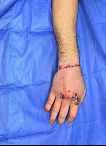 كتبت: جنى أبواليسر شاب صغير تعرض لحادث مروع… اليد قطعت بالكامل من عند الرسغ! وفي لحظة… كسر الحلم ، والأمل ضاع، والدنيا أسودّت. بعد جراحة استغرقت ما يقرب من 12 ساعه متواصلة لكننا والحمد لله في قسم جراحة التجميل – كلية طب الأزهر، "ما بنعرفش كلم
