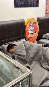 وأضاف المبيضين، أنه "ومن خلال مشاهداتي لاحظت أن بعض زبائن المطعم يشعرون بالنعاس الشديد بعد تناول وجبة المنسف؛ ما دفعني جديًّا إلى التفكير بتوفير خدمة النوم ما بعد الطعام في مكان مخصص".