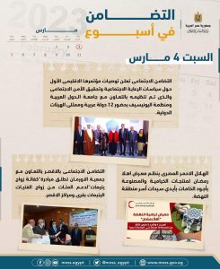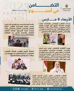 - احتفالاً باليوم العالمى للمرأة، التضامن الاجتماعى تستعرضا تقريرا عن جهودها فى مجالات دعم وتمكين المراة المصرية.