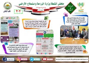 اصدر مركز المعلومات الصوتية والمرئية، التابع لوزارة الزراعة واستصلاح الاراضي، "الانفوجراف الاسبوعي" في نسخته رقم٩٠ ، حول الحصاد الاسبوعي لأهم أنشطة الوزارة، خلال الاسبوع الماضي في الفترة من ٦ الى ١٢ مايو الجاري، وذلك بالتعاون مع المكتب الاعلامي للوزارة، كما أصدر المركز ايضا ملخصا بالفيديو، حول انشطة الوزارة خلال نفس الفترة.