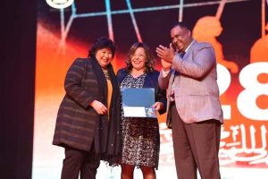 وقبل نهاية كلمتها وجهت ايناس عبد الدايم التحية لاسم الراحل الدكتور فوزي فهمي الذي تحمل اسمه هذه الدورة لما قدمه من مساهمات لإثراء الحياة المسرحية فنا وإدارة ، وما تركه من بصمات واضحة في كل مناحي الحياة الأكاديمية والفنية في مصر والوطن العربي ، كما تقدمت بالشكر لرئيس المهرجان وفريق العمل على ما بذلوه من جهد لخروج هذه الدورة الى النور ولجميع قطاعات الوزارة، وجميع اللجان الفرعية للمهرجان، ولجنتي التحكيم والمشاهدة وقالت انهم عملوا جميعا بكل جد واجتهاد، من أجل تقديم دورة مميزة تليق بتاريخ المهرجان وتتناسب مع اسم مصر ومكانتها ولجميع إدارات المهرجان السابقة التي شيدت كيانا نفخر به جميعا وبات علامة بارزة على ساحة الإبداع المصري والعالمي ، كما رحبت أيضا بضيوف مصر من العرب والأجانب الذين حرصوا على المشاركة وتمنت دورة ناجحة وموفقة.