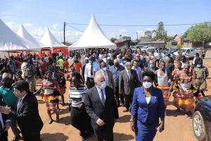 وقد شهد الدكتور عبد العاطى والسيدة هيلين الإحتفال الشعبي الذى أقيم بمناسبة إنتهاء المرحلة الخامسة للمشروع المصري الأوغندي لمقاومة الحشائش المائية بالبحيرات العظمى والمعنى بتطهير بحيرة فيكتوريا ، وإنشاء مرسي نهري بمقاطعة كامونجا الأوغندية ، وذلك بحضور عدد من المسئولين الأوغنديين وممثلي المقاطعة وعمدة المنطقة والأهالي وسط أجواء إحتفالية تعبر عن شكرهم لمصر لتنفيذ المرسي النهري لخدمة نشاط الصيد في المنطقة.