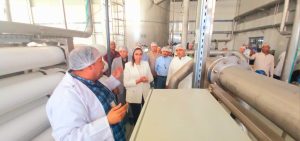 حيث قامت خلال جولتها بمتابعة إنتظام سير العمل والجودة الإنتاجية وتفقدت المصنع المقام على مساحة 35 فدان حيث تبلغ مساحة الانشاءات به 13250م٢ المساحة المتبقية للتوسعات وخطوط الإنتاج الجديدة ويحتوى على 6 خطوط إنتاج ،خطين لإنتاج جالون 16 لتر بطاقة إنتاجية مليون جالون فى الشهر وخط لإنتاج جالون 8 لتر بطاقة إنتاجية مليون جالون بالشهر وخط لإنتاج اكواب باحجام مختلفة بطاقة انتاجية 500 ألف كرتونة فى الشهر و كذا خط انتاج مياة زجاج فوارة باحجام مختلفة 240م 500م،1لتر بطاقة 500 ألف كرتونة وخط انتاج مياة بعبوات بلاستيكية باحجام 329، 600 لتر ونصف بطاقة إنتاجية 1.5مليون كرتونة بالشهر