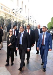 عقب انتهاء أعمال اللجنة العليا المصرية التونسية المشتركة بالعاصمة التونسية، اصطحبت السيدة / نجلاء بودن، رئيسة الحكومة التونسية، الدكتور مصطفي مدبولي، رئيس مجلس الوزراء، والوفد المرافق له، في جولة مترجلين بمختلف المناطق التاريخية بتونس.