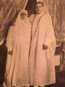 حسين صدقي مع زوجته عقب عودتهما من الحج