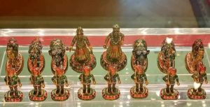 وتحمل طِراز هِندي في شَكله ومضمُونه وهو مُحاكاه لحَرب بين فَريقين باللون الأحمَر والأخضَر بعَدد ٣٢ قِطعه
