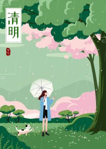 في هذا اليوم، يذهب الصينيون إلى المقابر مع القرابين، ويزيلون الأعشاب الضارة حول القبور، ويُصلون من أجل ازدهار الأسرة.