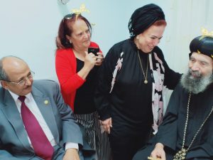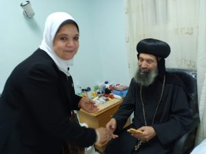 الدكتورة مني أبو هشيمة نائب رئيس المؤسسة تطمئن على الأنبا بسنتي أسقف المعصرة وحلوان