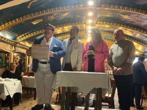 وعلى هامش الرحلة أقام المهندس جورج عياد رئيس منظمة المصريين المغتربين بالخارج حفل عشاء على مركب فرعونى بالنيل، حظى باعجاب الوفد وتفاعلوا مع الموسيقى المصرية، والفلكلور المصرى مثل التنورة والطبلة وغيرها، وأهداهم عياد شهادات تقدير من المنظمه لمشاركتهم فى الرحلة.