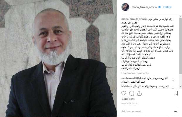 وفي ذكرى وفاته الثانية، نشرت صورة والدها مرفقة برسالة له: "بحاول أحقق حلمك، كملت بالجامعة اللي كنت عاوزها ليا، وبشتغل في الحاجة اللي بتحبها وبحبها زي ما طلبت مني، ويارب أحقق حلمك وأكبر بشغلي واجتهد، بس كل حاجه كانت هتبقى أحسن لو أنت موجود".