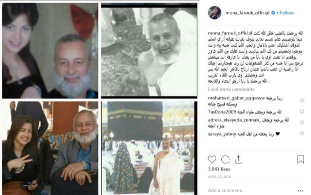 في إبريل 2018، وجهت "منى" رسالة لوالدها عبر حسابها مرفقة بمجموعة صور له، معلقة: "تعالى شوف بغيابك تعبانة إزاي، أتمنى أشوفك واشتكيلك، أحس بالأمان والحب اللي كنت حاسة بيه وأنت موجود تحميني من كل اللي بيأذيني، وأسند عليك من اللي عايز يوقعني، أنا تعبت من بعدك".