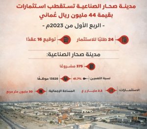بقيمة 44 مليون ريال عماني .. استثمارات مدينة صحار الصناعية خلال الربع الأول من العام الحالي