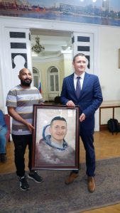 بورتريه للسفير ورائد الفضاء الروسى فى ورشة الرسم الحر
