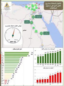 وصرح الدكتور عبد العاطى أنه تم الإنتهاء من تأهيل ترع بأطوال تصل الى ٤٩٥١ كيلومتر بمختلف محافظات الوادى والدلتا ، من أعلاها ٥١٥ كيلومتر بمحافظة قنا و ٥٠٦ كيلومتر بمحافظة المنيا و ٤٧٨ كيلومتر بمحافظة بنى سويف و ٣٤٠ كيلومتر بمحافظة سوهاج و ٣٢٠ كيلومتر بمحافظة القليوبية و ٣١٥ كيلومتر بمحافظة الشرقية و ٣١١ كيلومتر بمحافظة الدقهلية و ٢٨٩ كيلومتر بمحافظة كفر الشيخ و ٢٦٨ كيلومتر بمحافظة الإسكندرية و ٢٥٥ كيلومتر بمحافظة المنوفية.