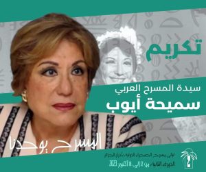 أعلن عقباوي الشيخ رئيس مهرجان ليالي مسرح الصحراء الدولية في أدرار بالجزائر، تكريم سيدة المسرح العربي سميحة أيوب في المهرجان الذي سينعقد في الفترة ما بين 12 و18 أكتوبر القادم.